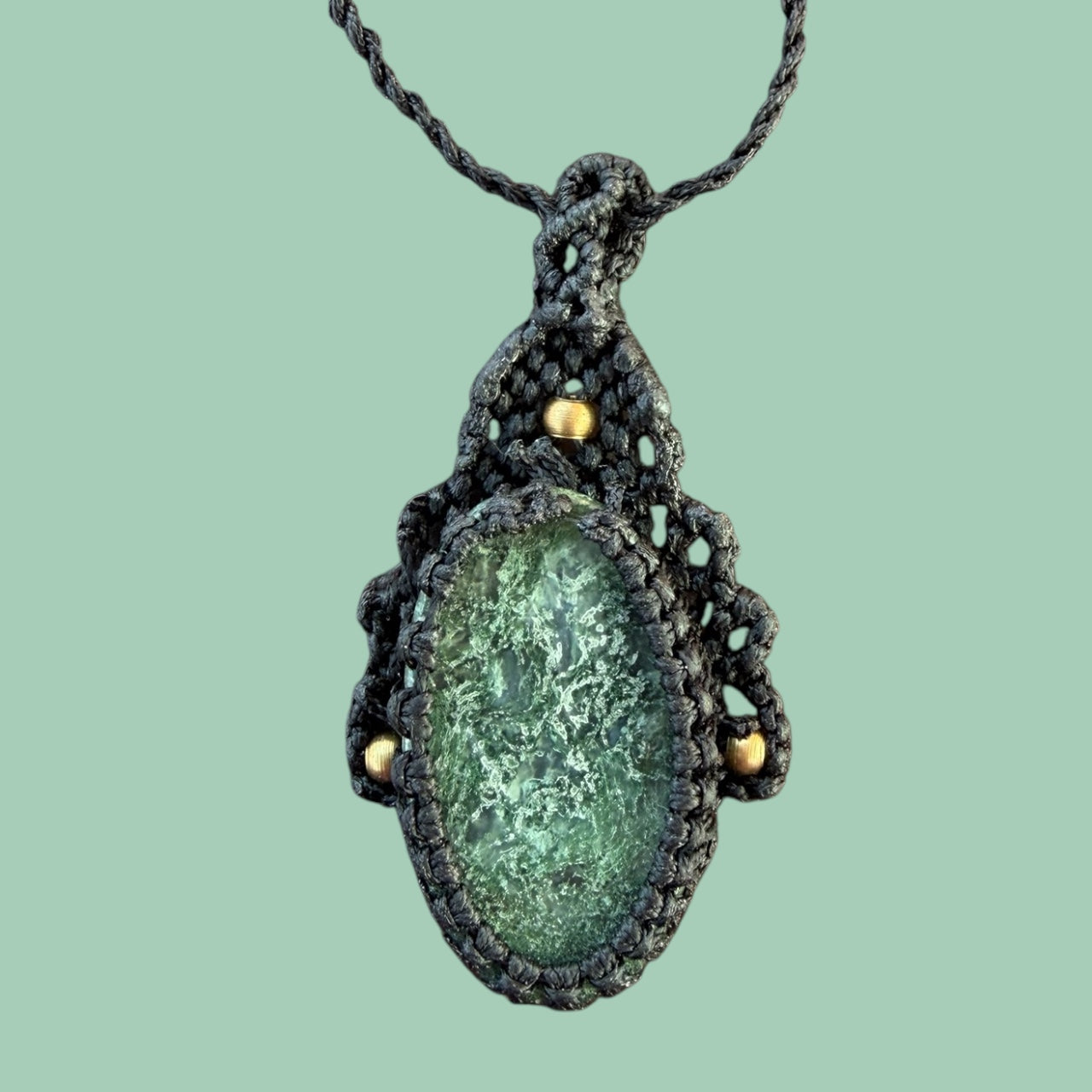 Macramé ketting met ruwe jade